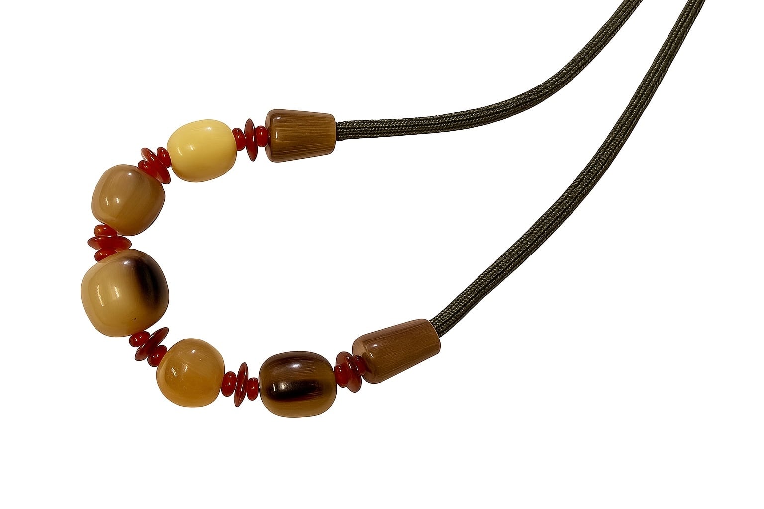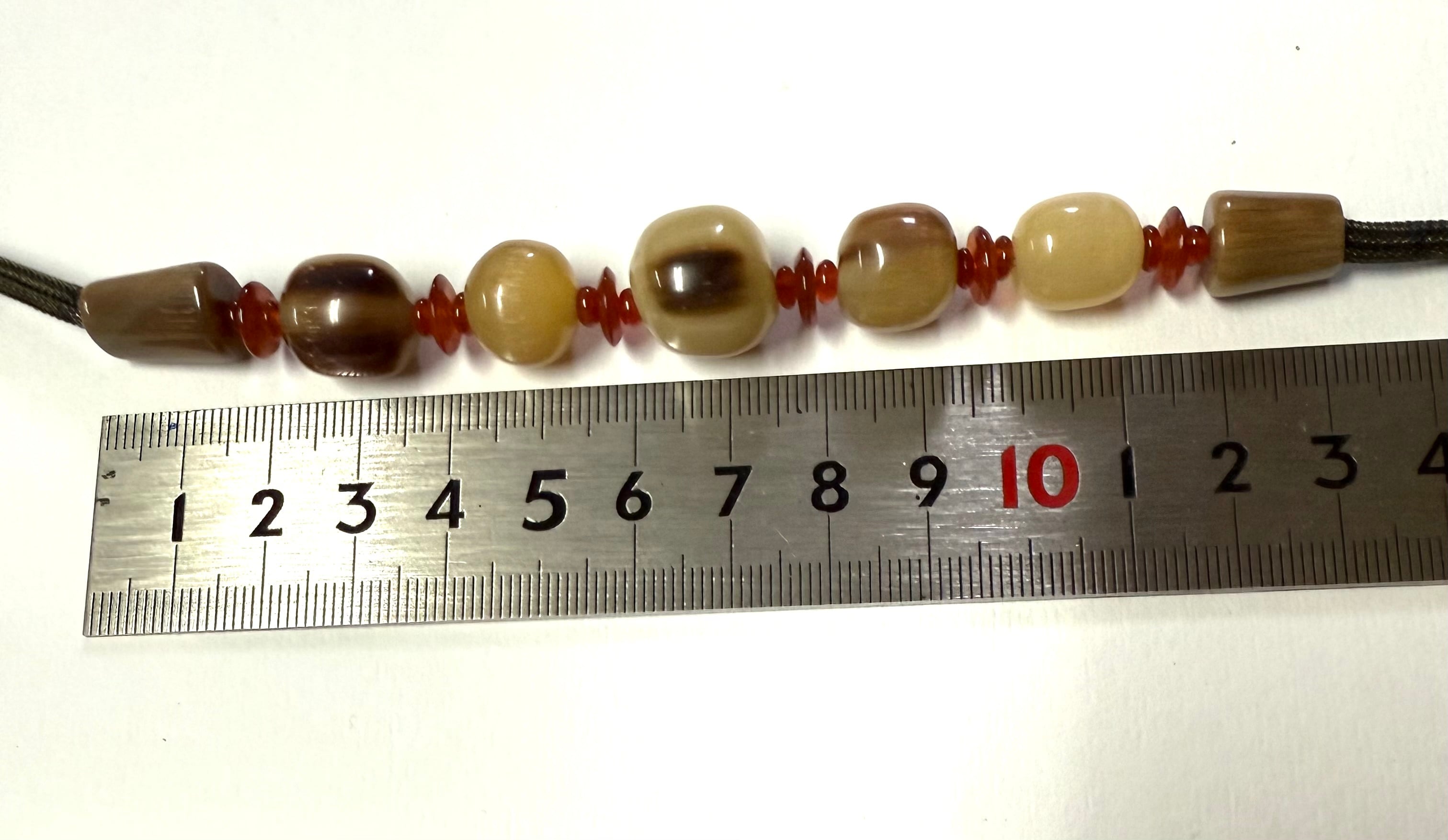 水牛の角から作られた玉状のパーツとメノウのパーツを組み合わせた魅力的なネックレスです。このデザインはどんなスタイルにもぴったりマッチし、日常のコーディネートに華やかさをプラスします。